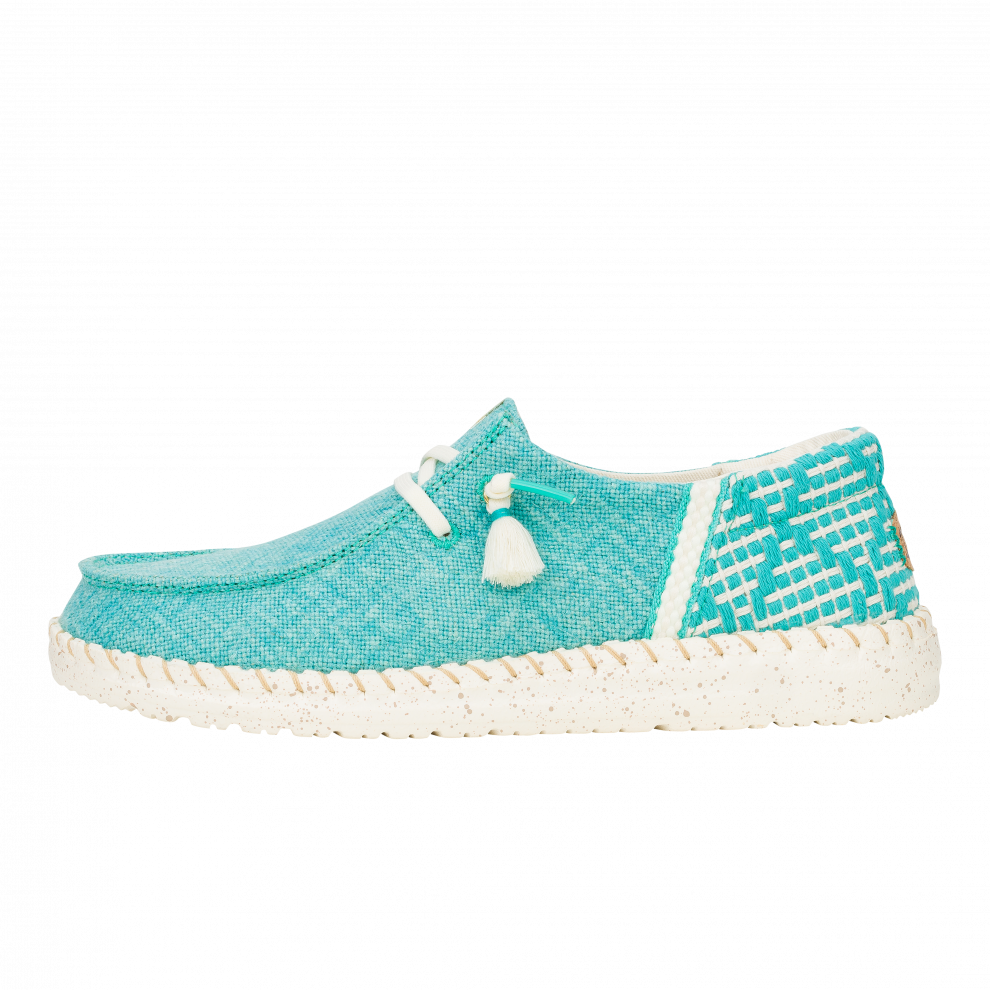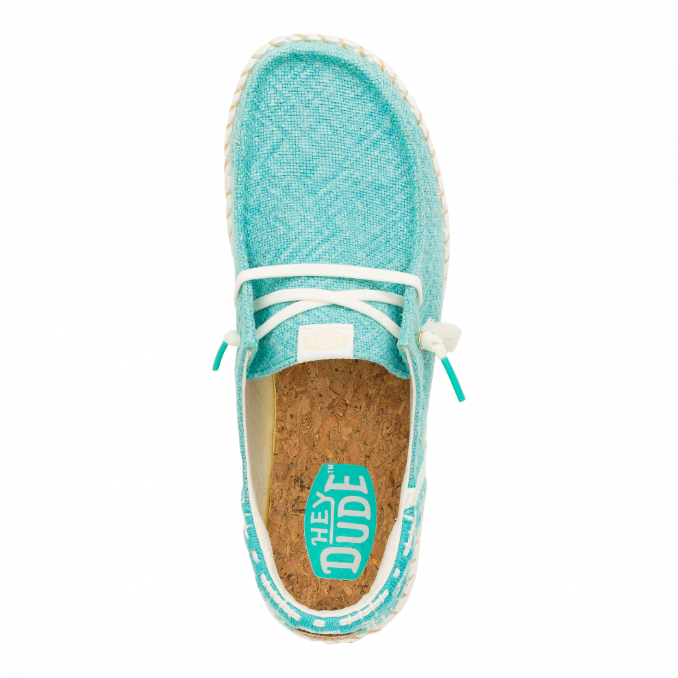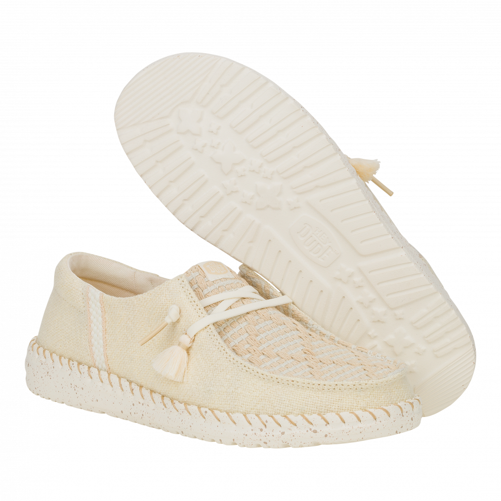 Channel your inner beach babe with the Wendy Funk Coastal Jute️. These breezy kicks have a woven jute upper inspired by your favorite beach blanket and whipstitch detailing on the midsole for added fun. Conquer your day in style and comfort with a cork footbed, easy-on elastic laces, and a touch of coastal flair with playful lace tassels.