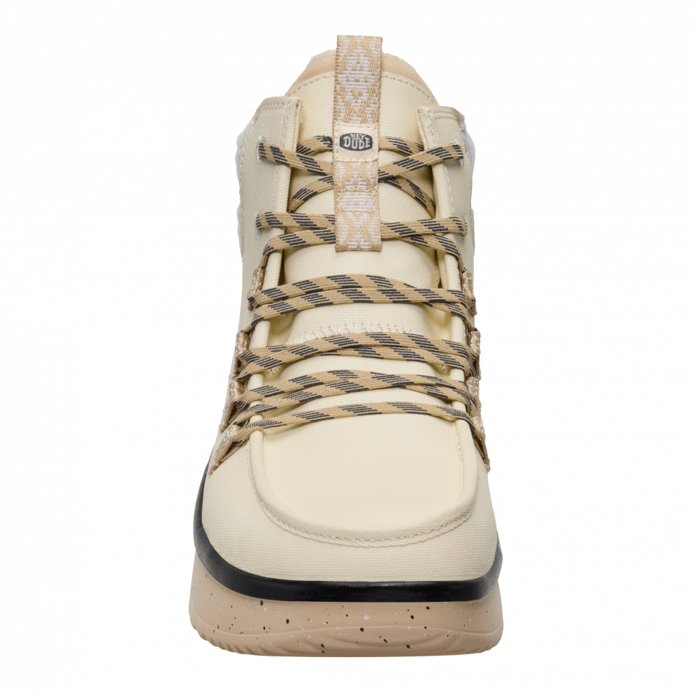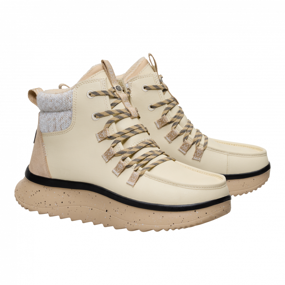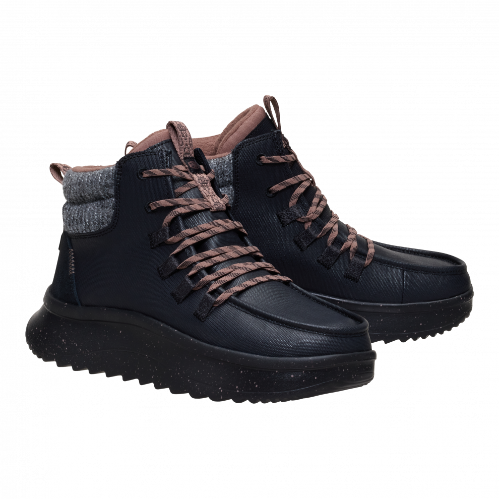 When it gets chillier, the Wendy Peak Apres Coated Canvas is a great fashion choice for all your cold-weather activities. Its made from tough coated canvas, with handles and flexible laces great for quickly leaving the house on a brisk morning. Additional features like flannel-print laces and a soft textured collar make it unique.