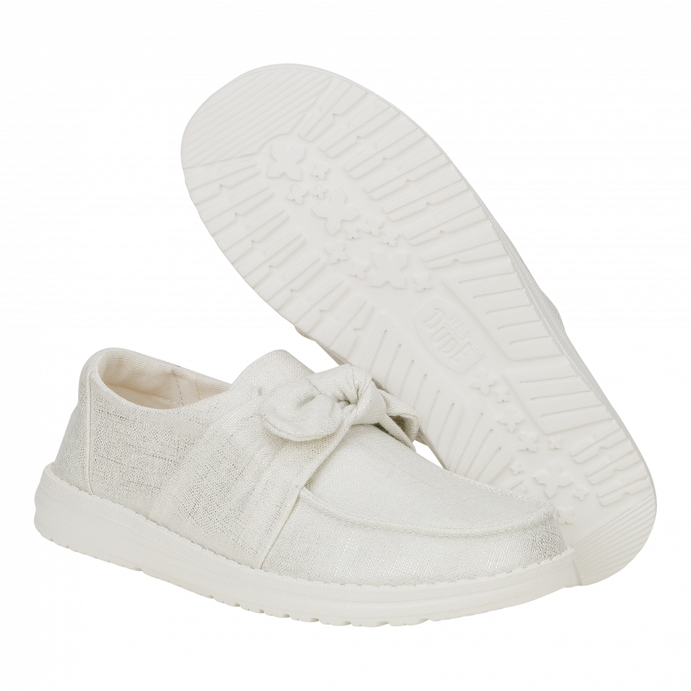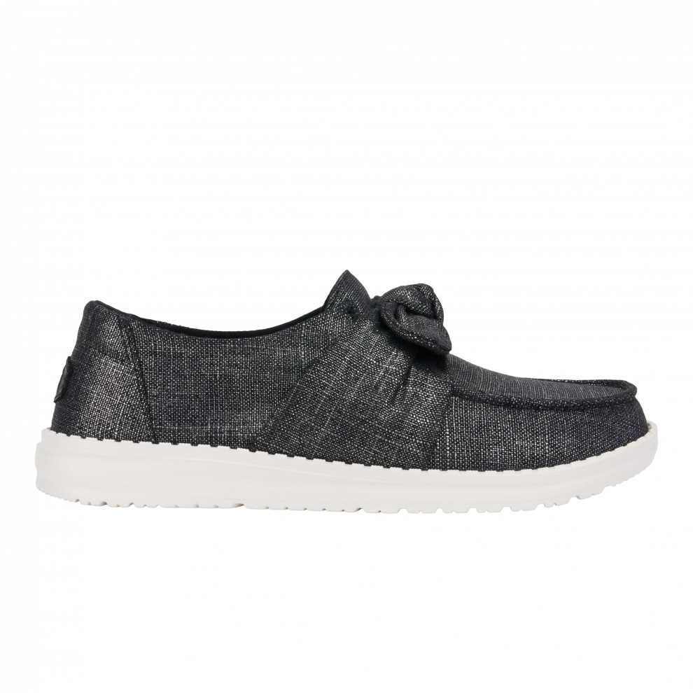 You are the belle of the ball in Wendy Bow Shimmer. This dazzling new go-to combines a playful fixed bow with a head-turning metallic shimmer upper, making every step shine. While a fun, cow print EVA foam-filled removable insole cushions underfoot.
