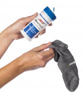 For best results, wash and thoroughly dry your feet before applying BlisterShield, blister prevention product. Wiping alcohol between toes after drying also helps reduce moisture. Pour one level teaspoonful of BlisterShield into each sock. Shake the socks to spread the powder uniformly. For added blister protection, apply additional BlisterShield behind your heel after the sock is on.