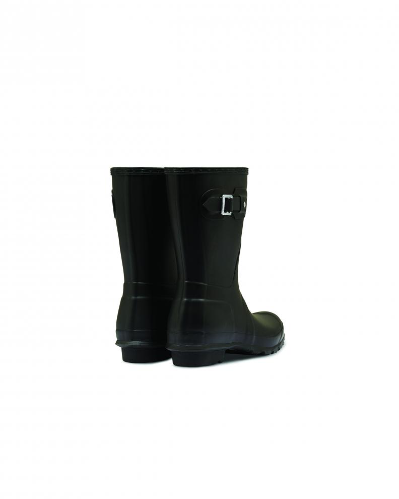 Perfect for wet weather conditions this womens Wellington Boot is a shorter version of the iconic Hunter Original Tall Boot. Formed of natural rubber, each boot is handcrafted and assembled over three days before being vulcanised for superior protection. Featuring the Hunter Original tread pattern, and a comfortable polyester lining, this classic black waterproof boot is a rainy-day necessity.