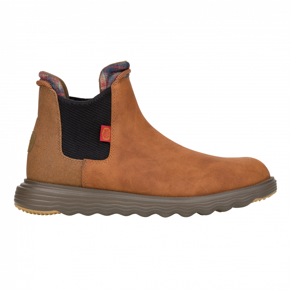 A classy boot for a classy dude. Branson Classic is in it to win it this season with a faux leather water repellant upper, lightweight flex outsole and rubber pods for added traction. Slip into classic HEYDUDE™ comfort and style.