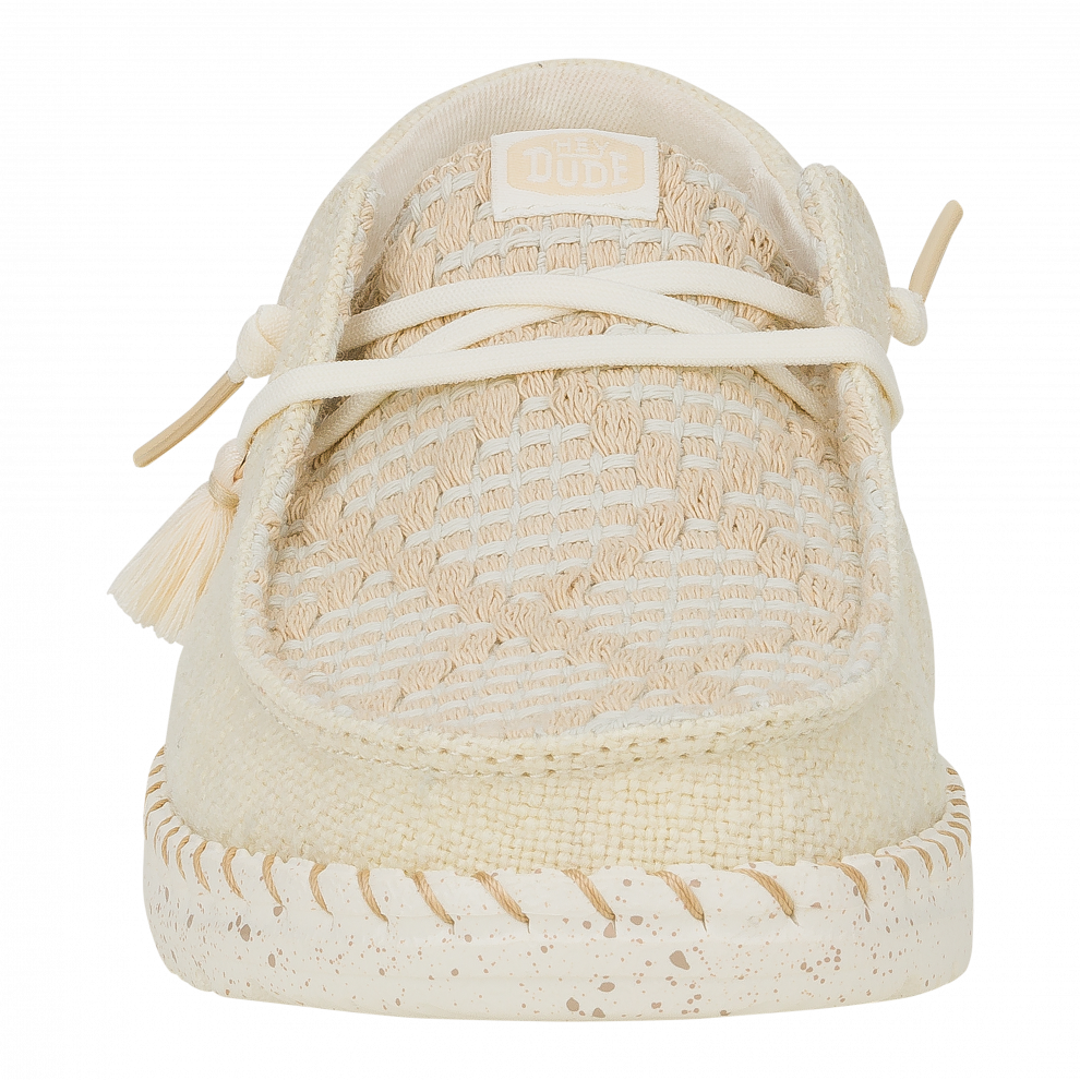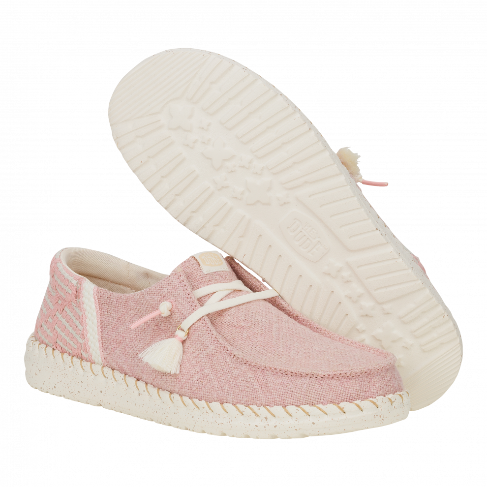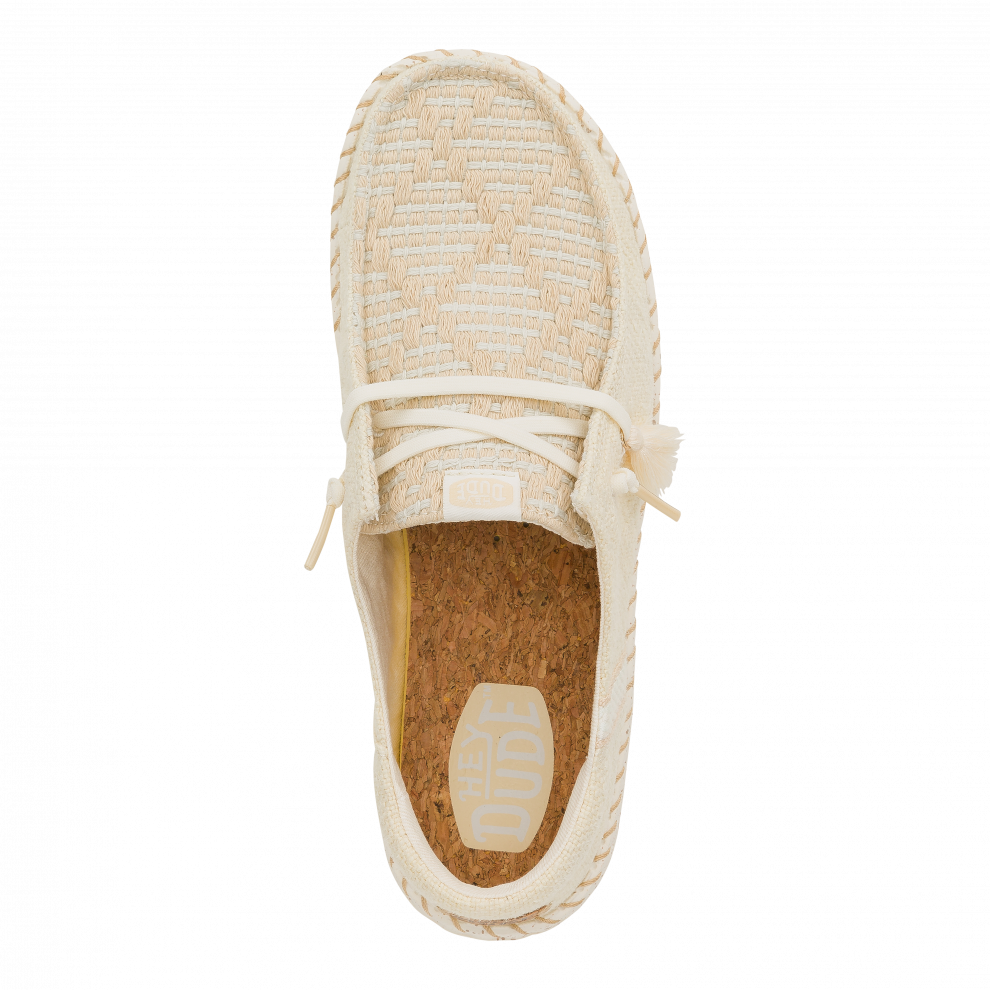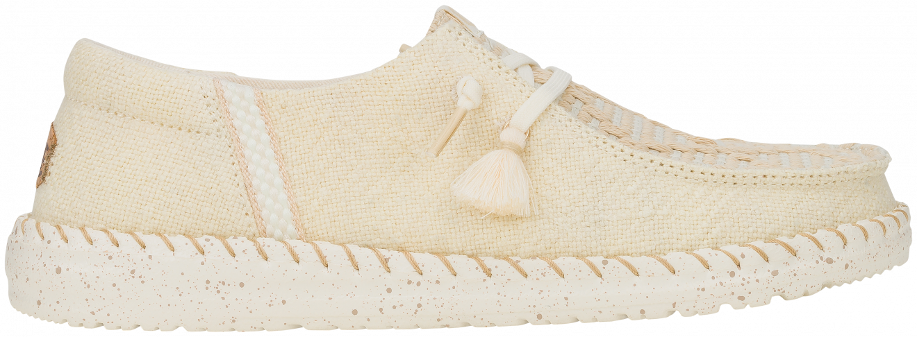 Channel your inner beach babe with the Wendy Funk Coastal Jute️. These breezy kicks have a woven jute upper inspired by your favorite beach blanket and whipstitch detailing on the midsole for added fun. Conquer your day in style and comfort with a cork footbed, easy-on elastic laces, and a touch of coastal flair with playful lace tassels.