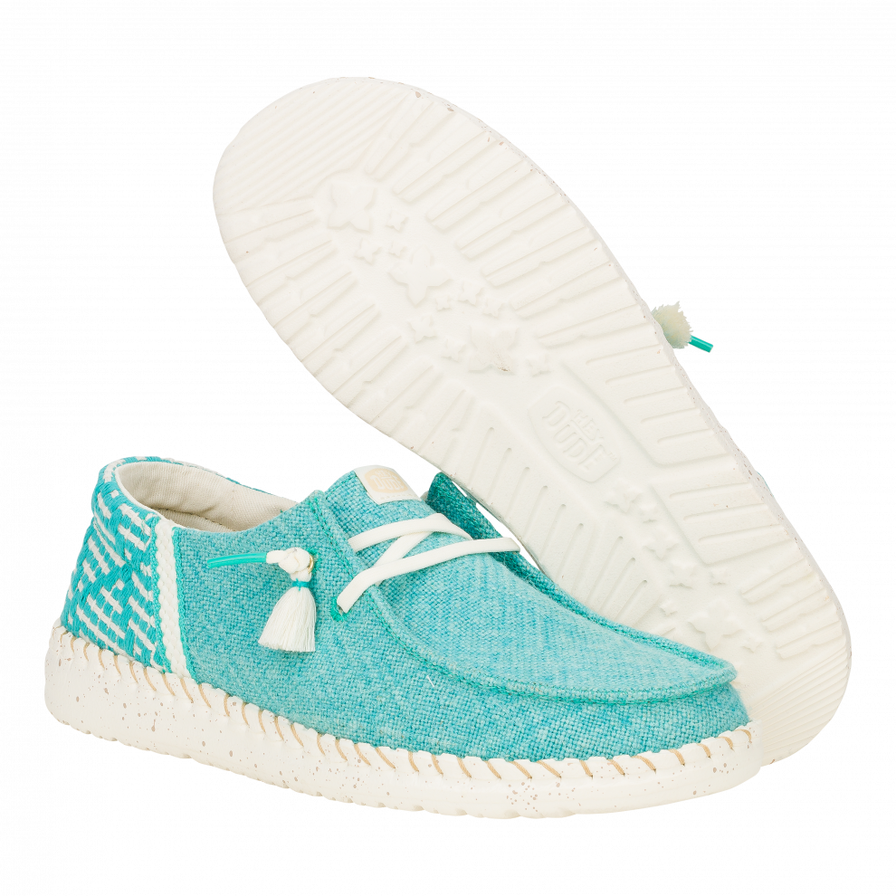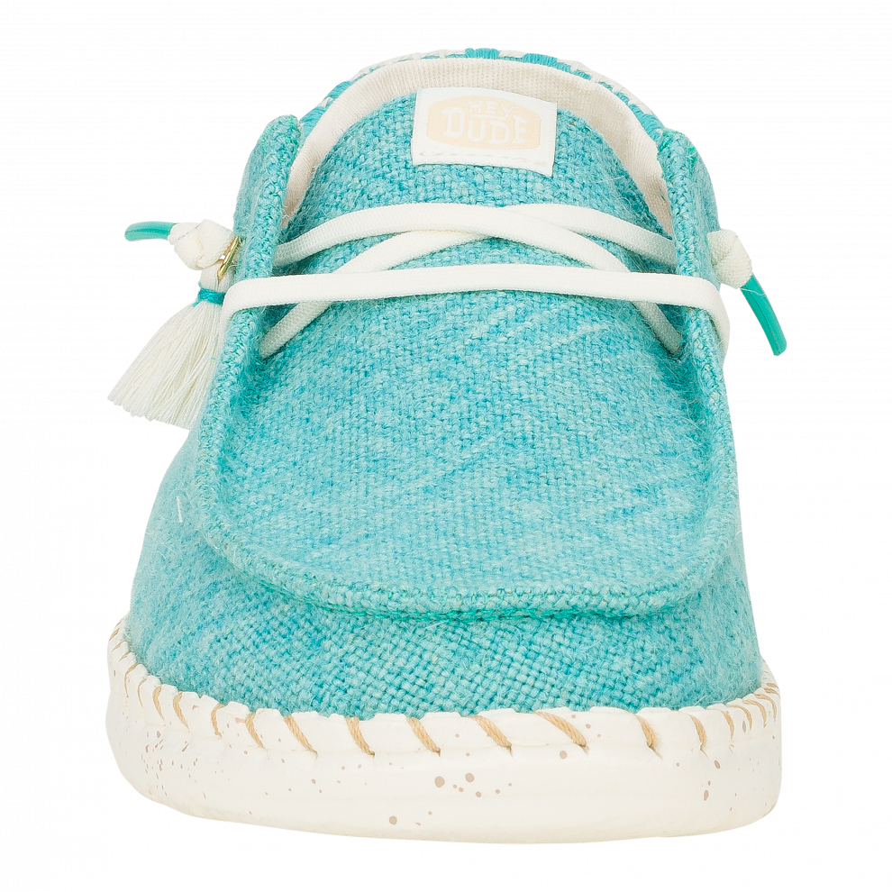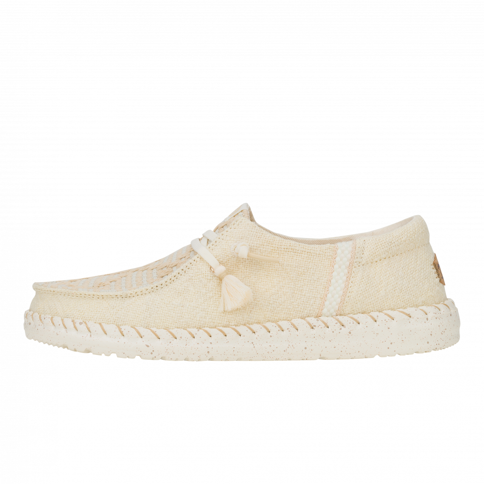 Channel your inner beach babe with the Wendy Funk Coastal Jute️. These breezy kicks have a woven jute upper inspired by your favorite beach blanket and whipstitch detailing on the midsole for added fun. Conquer your day in style and comfort with a cork footbed, easy-on elastic laces, and a touch of coastal flair with playful lace tassels.