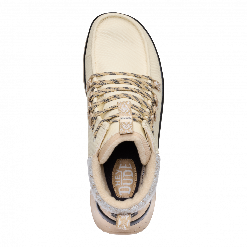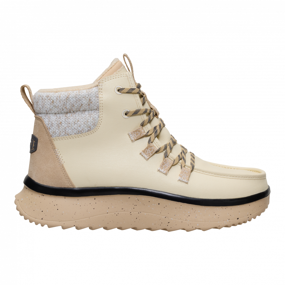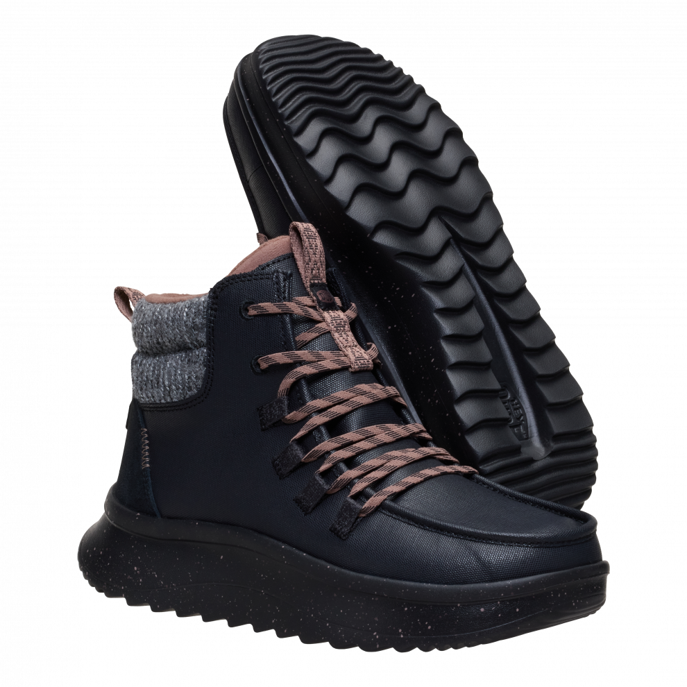 When it gets chillier, the Wendy Peak Apres Coated Canvas is a great fashion choice for all your cold-weather activities. Its made from tough coated canvas, with handles and flexible laces great for quickly leaving the house on a brisk morning. Additional features like flannel-print laces and a soft textured collar make it unique.