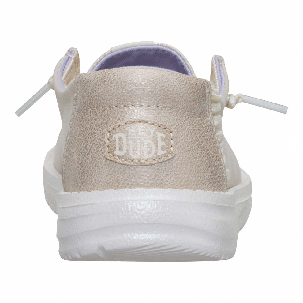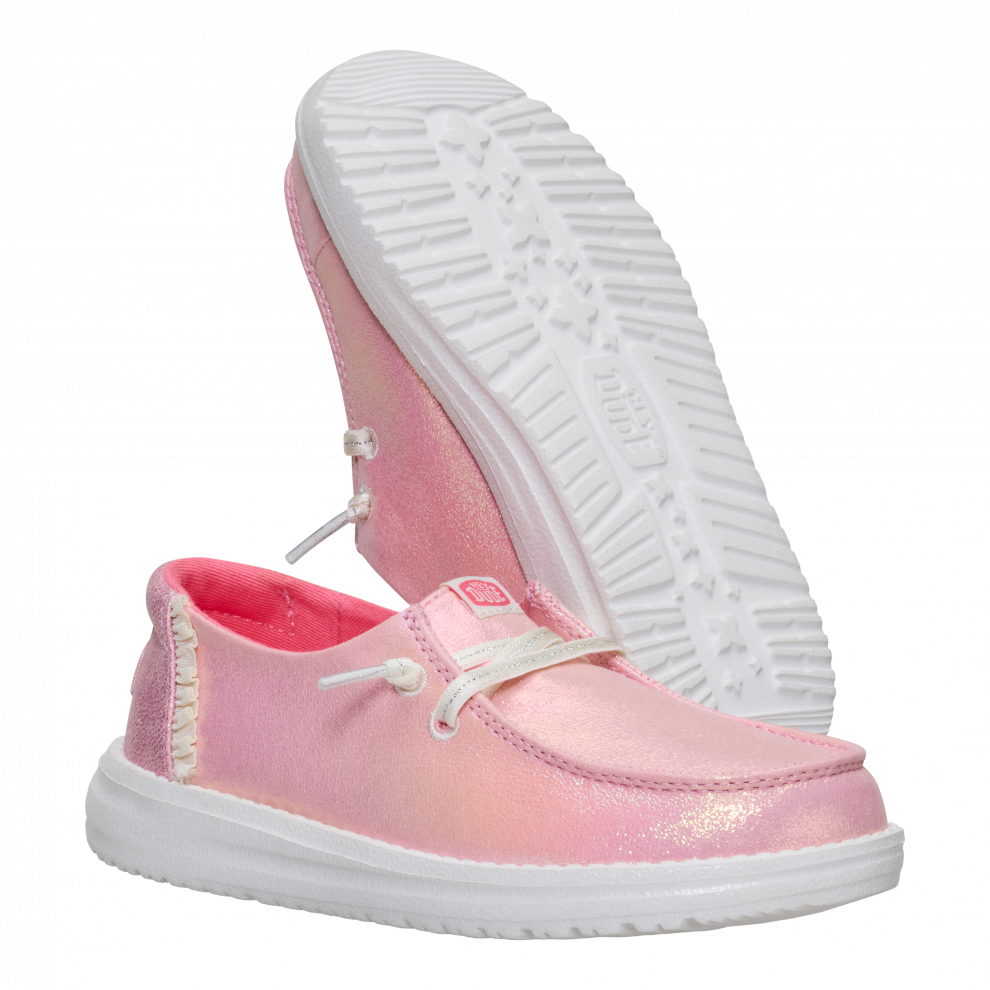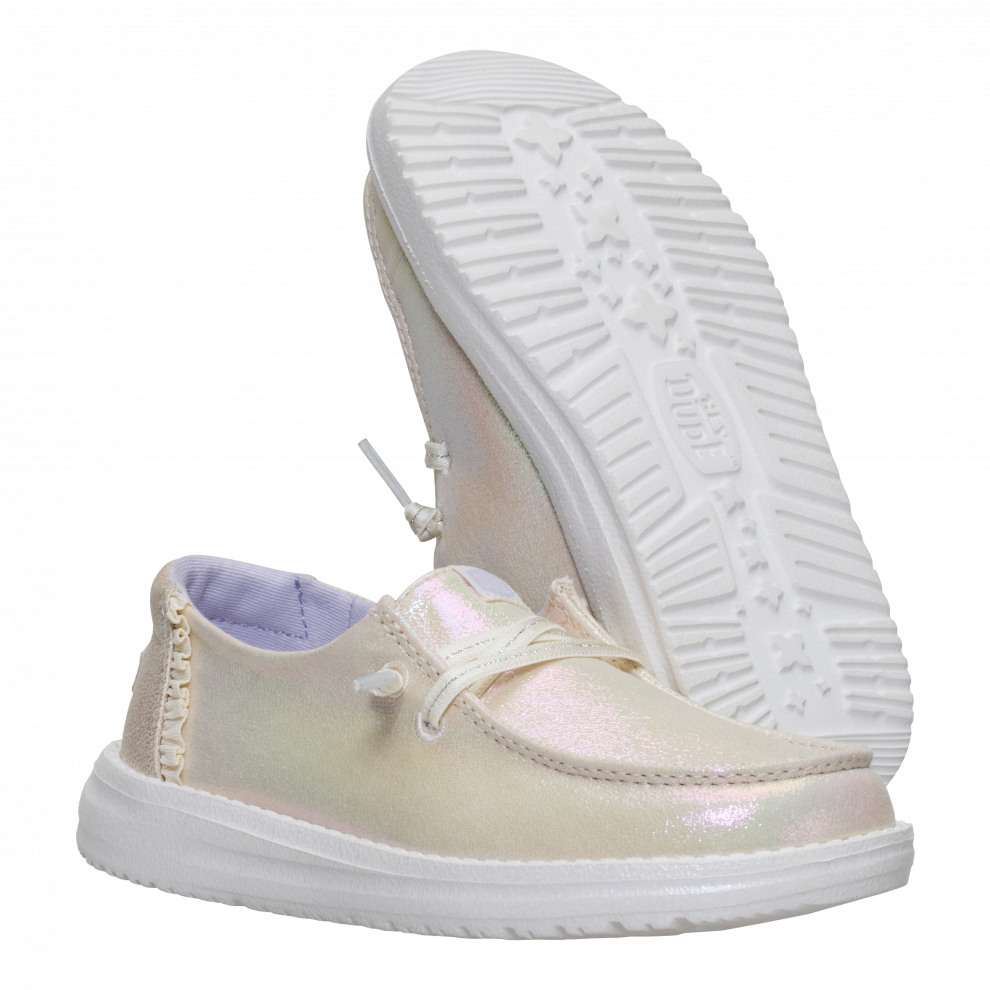 These glittering Wendy shoes for older children can brighten up any day. They catch the eye with a shiny, fabric shell, decorated with playful, soft details. The easy-on style comes with a broad collar that can be stepped into, and stretchy laces that dont require tying. Lightweight, flexible, and comfortable, theyre perfect for a day filled with play.