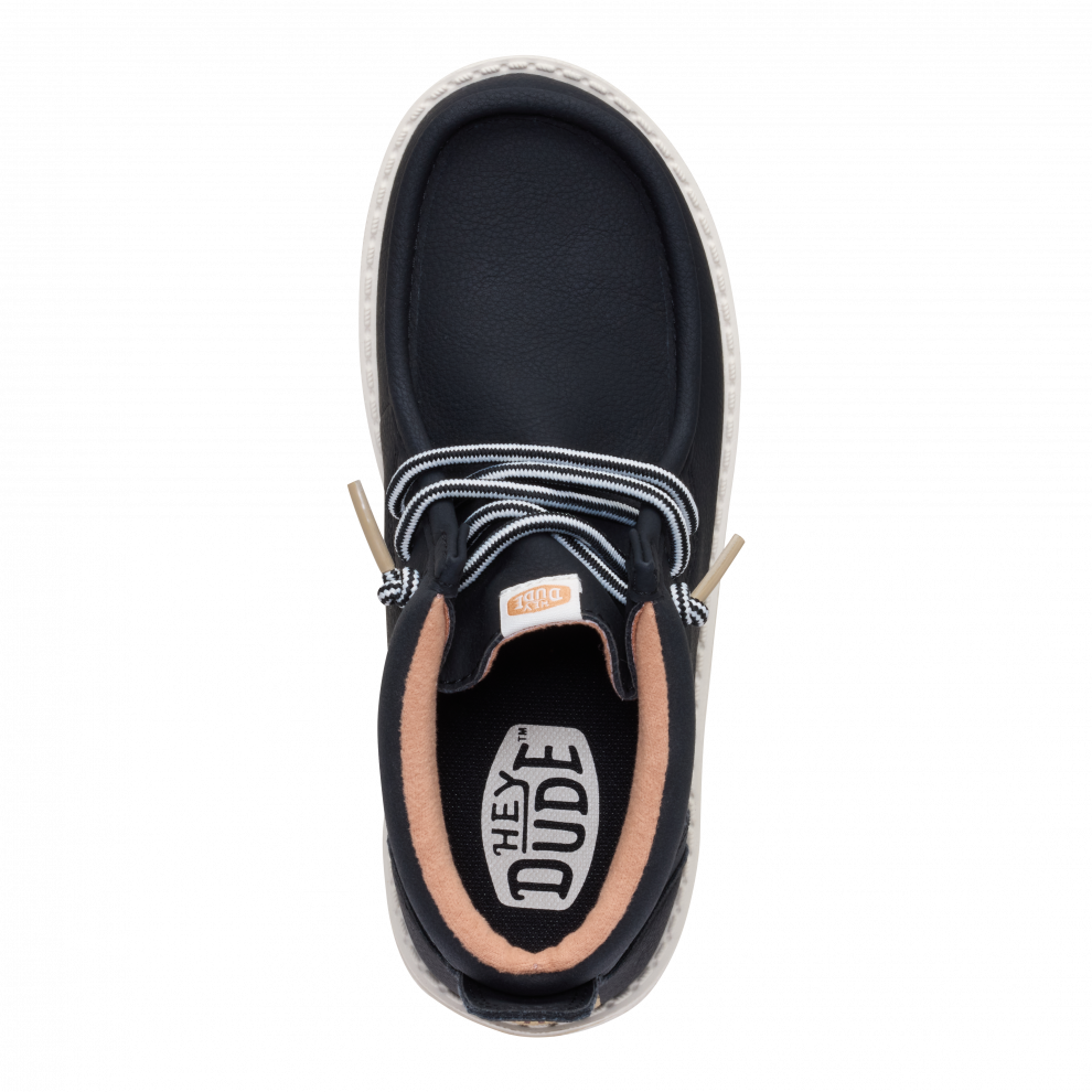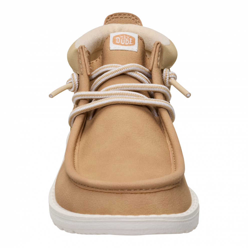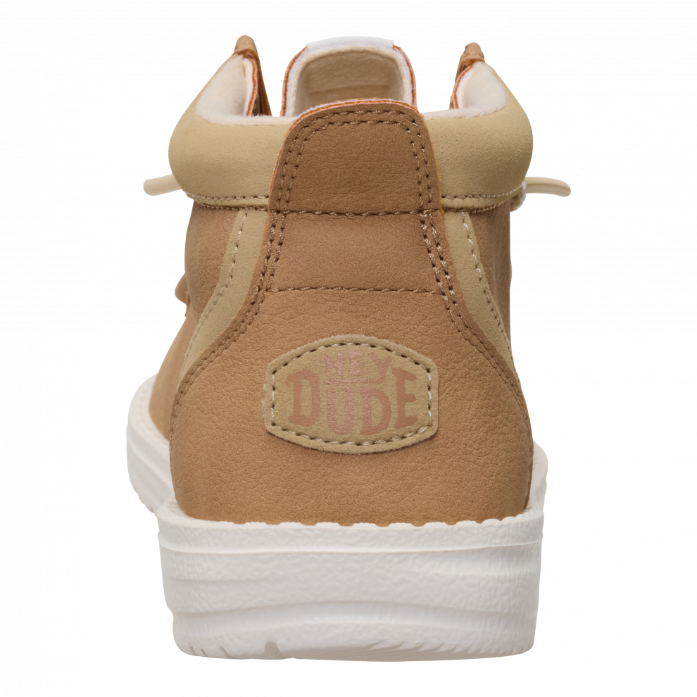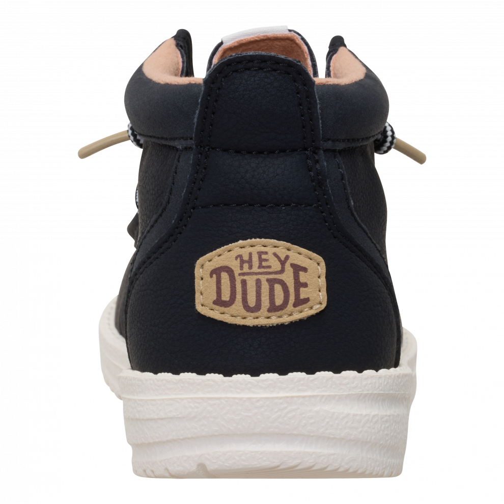 For fashion-conscious kids who dont need bells and whistles to express themselves, these Wally Mid shoes are the tops. Made from clean, classic materials in a neutral shade that goes with anything, they hit slightly higher up the ankle but are still super easy to step into. Signature HEYDUDE™ elastic laces dont need tying to keep the fit snug.