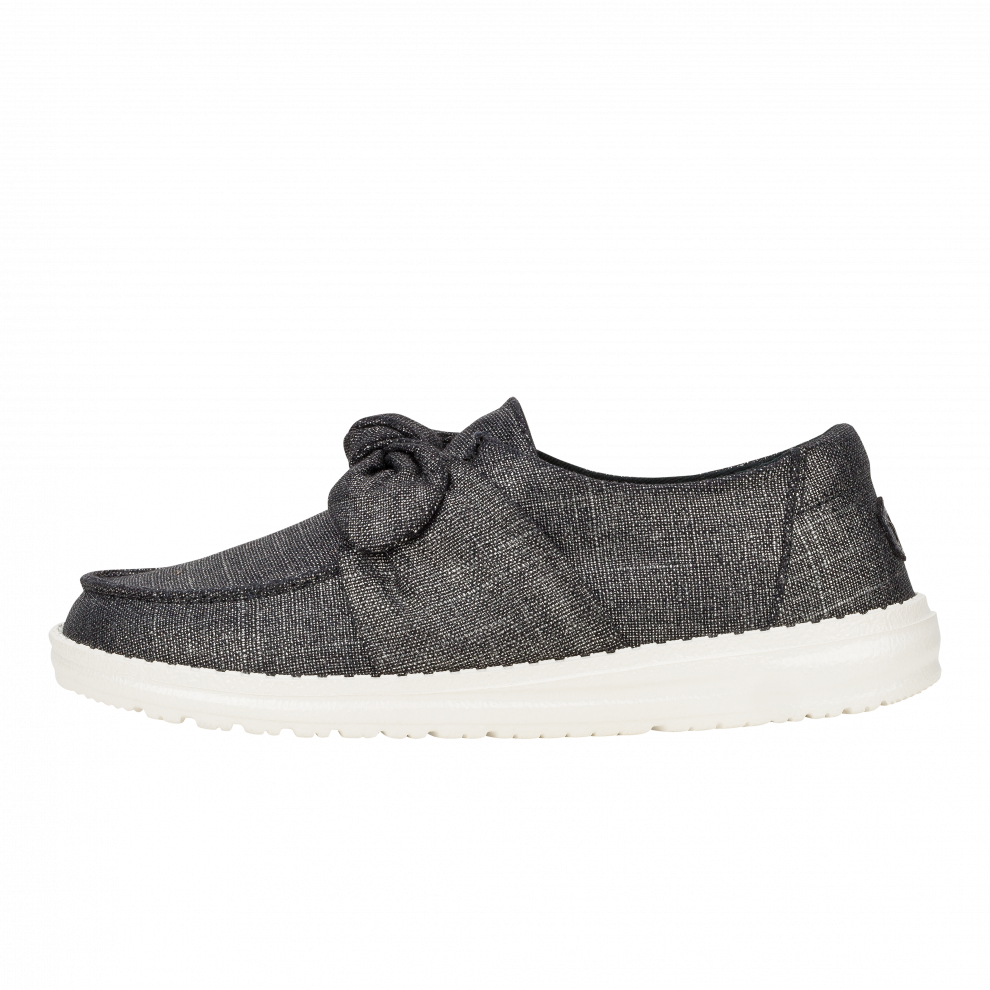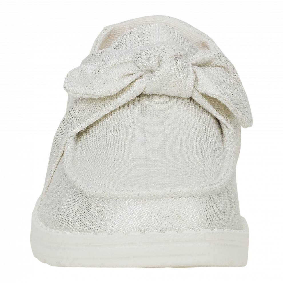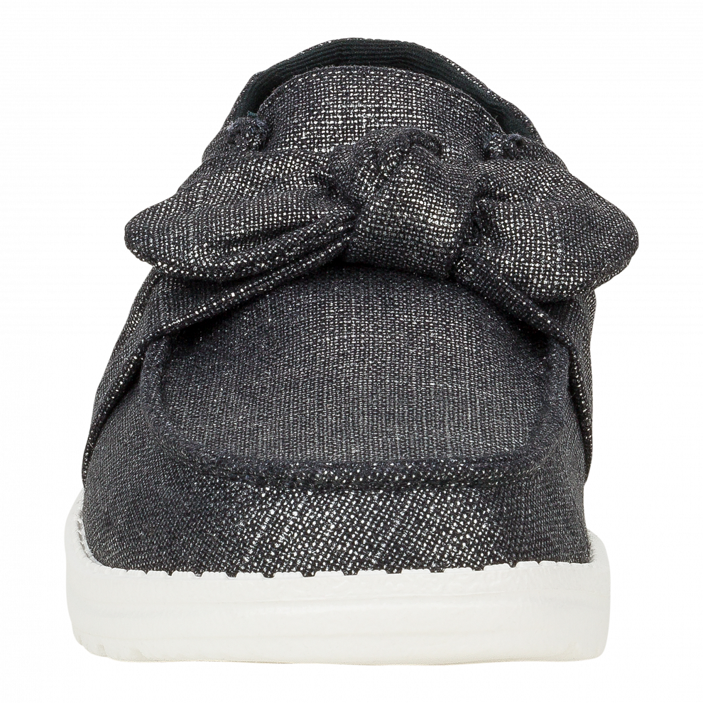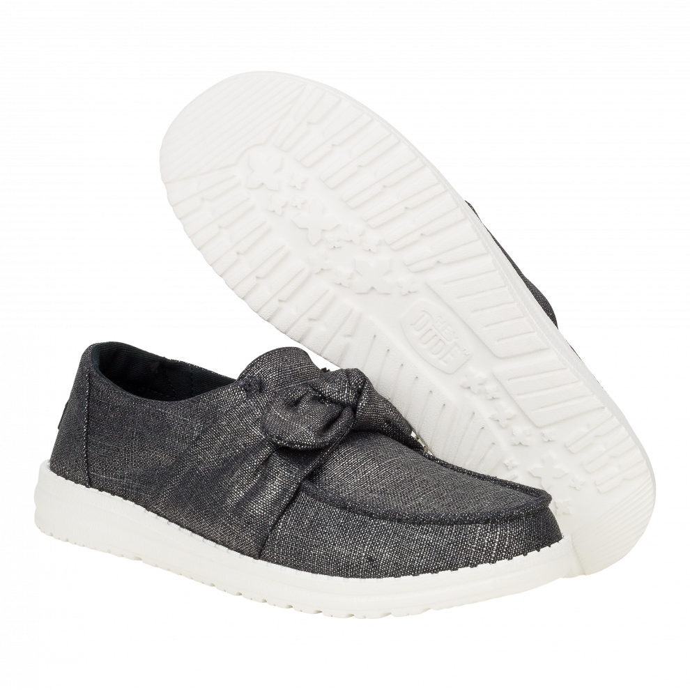 You are the belle of the ball in Wendy Bow Shimmer. This dazzling new go-to combines a playful fixed bow with a head-turning metallic shimmer upper, making every step shine. While a fun, cow print EVA foam-filled removable insole cushions underfoot.